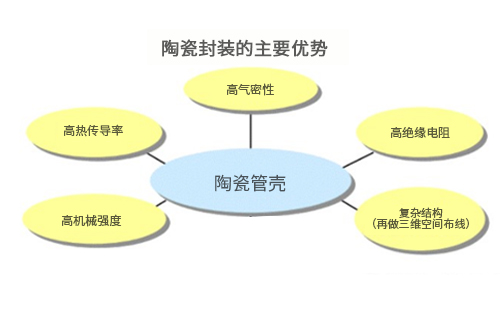 近年來,隨著半導體行業(yè)的空前發(fā)展其芯片封裝技術也得到了廣泛的應用。因此選用合適的陶瓷管殼封裝尤為重要。集成電路封裝管殼起到了固定密封保護芯片和提高導熱性能等作用,最重要是溝通芯片內(nèi)部和外界電路,將芯片上的接觸點用導線或其他線路封裝在管殼引腳,并建立聯(lián)系。